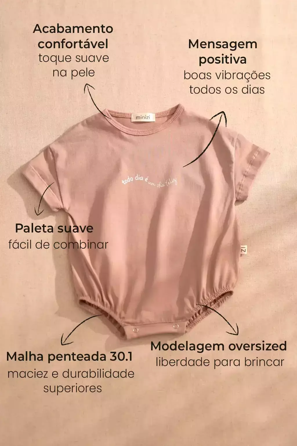 Ideal para compor looks leves e modernos, essa peça é perfeita para usar em casa, nos passeios em família ou nas descobertas da rotina com o bebê. A estampa traz uma frase positiva que encanta e conecta pais, cuidadores e pequenos a uma infância mais feliz e acolhedora.